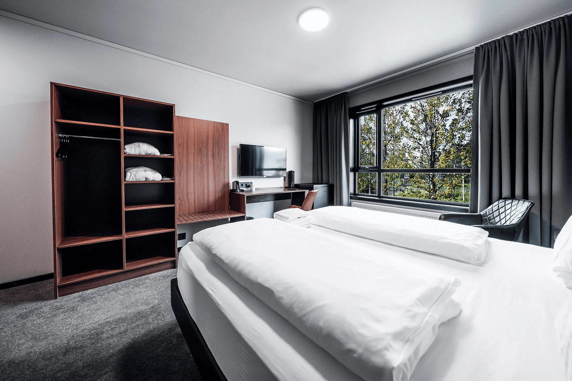 A bright and comfortable 25 m² room with either a double bed or two single beds. Designed for a calm stay in Reykholt, with warm interiors and practical touches to make your visit easy and relaxing.