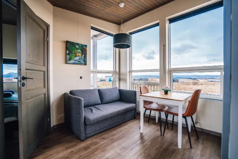 A bright and comfortable 20 m² room with either a double bed or two single beds. Designed for a calm stay in Reykholt, with warm interiors and practical touches to make your visit easy and relaxing.